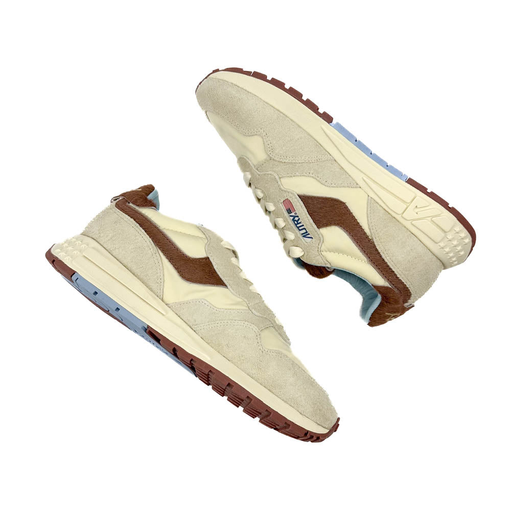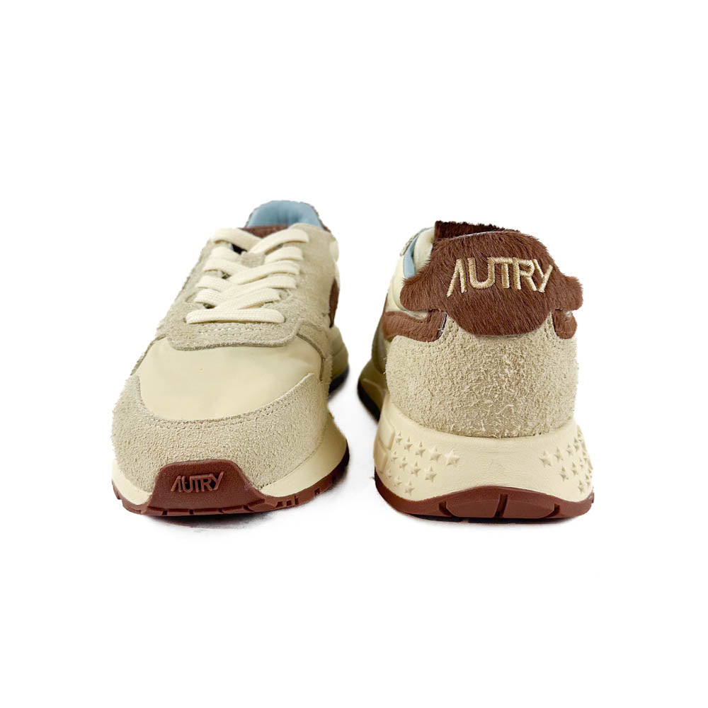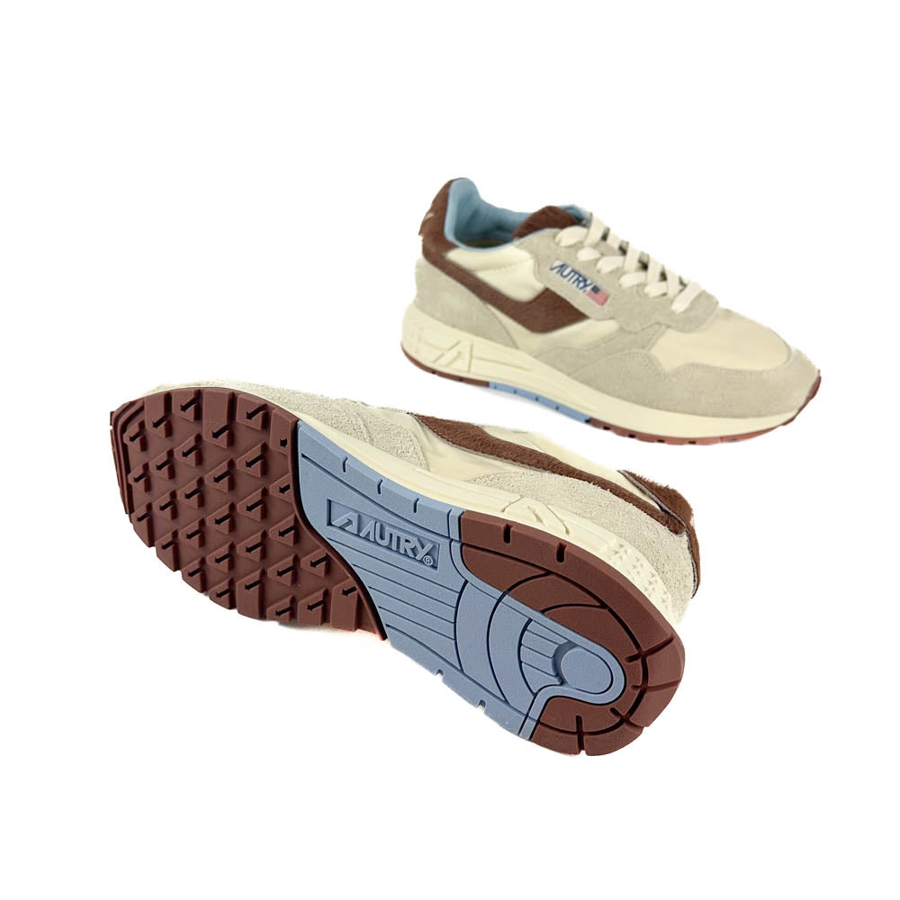 Innovative, light and extremely flexible, Reelwind Autry sneakers draw inspiration from the running world. This style is made from beige suede and nylon with brown pony skin-effect side inserts.