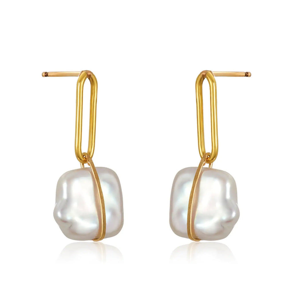 Mabel Chong - Square Pearl Post Earrings (Gold)
