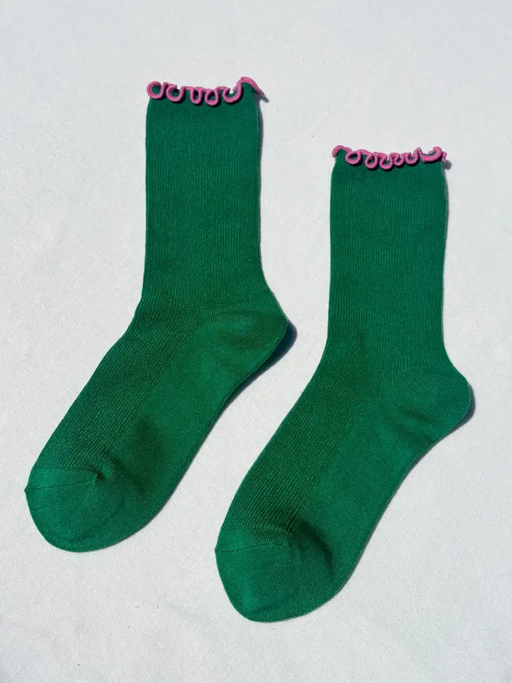 Le Bon Shoppe - Ruffled Modal Socks (Spinach/Pink)