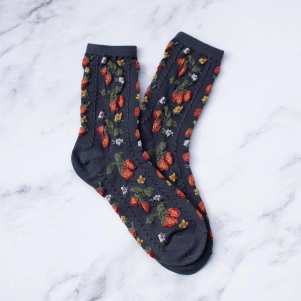 Tiepology - Strawberry Farm Casual Socks (Charcoal)