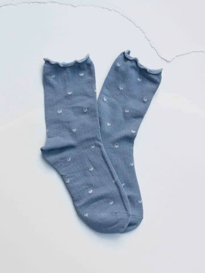 Tiepology - Mini Heart Ruffle Cotton Blend Socks (Blue/Silver)