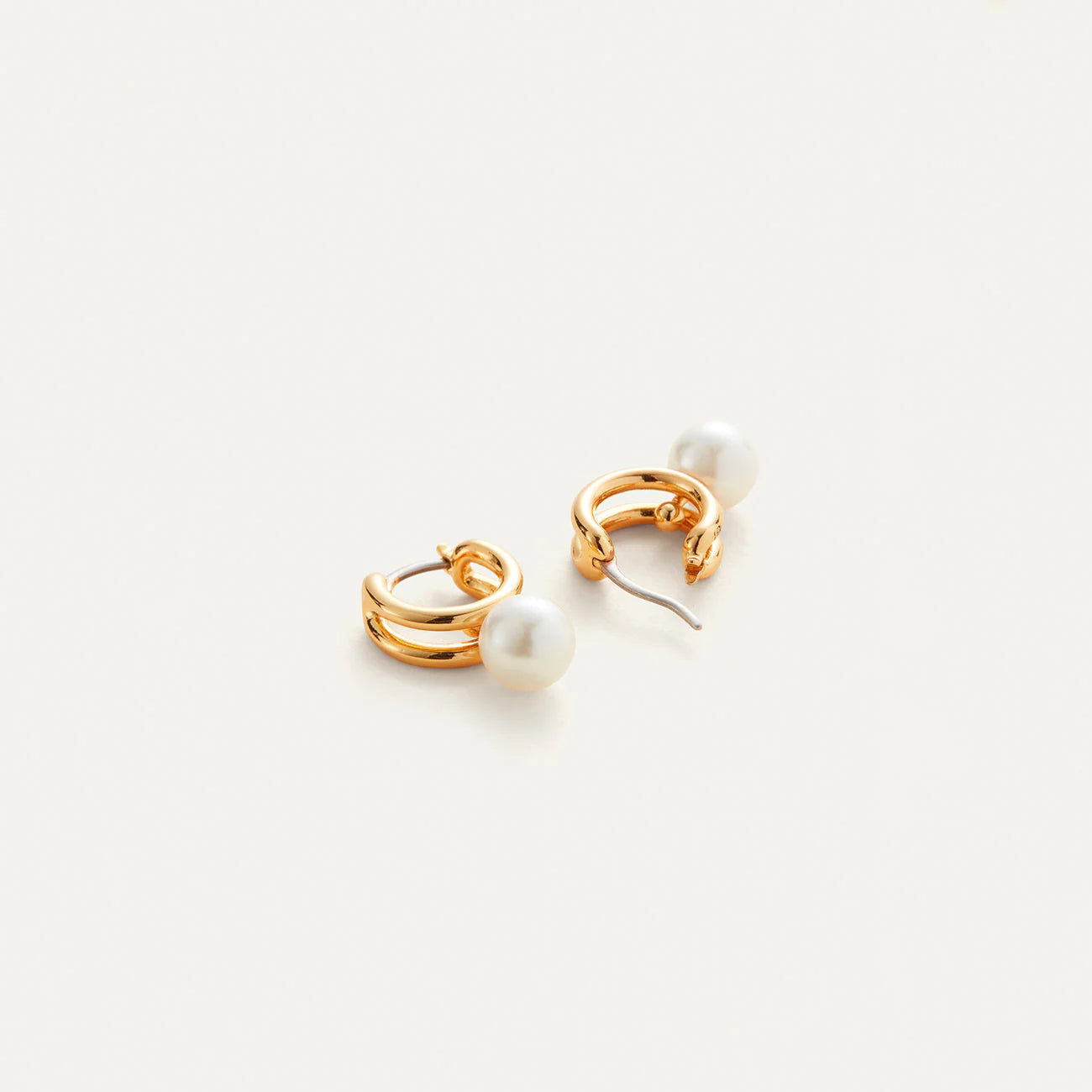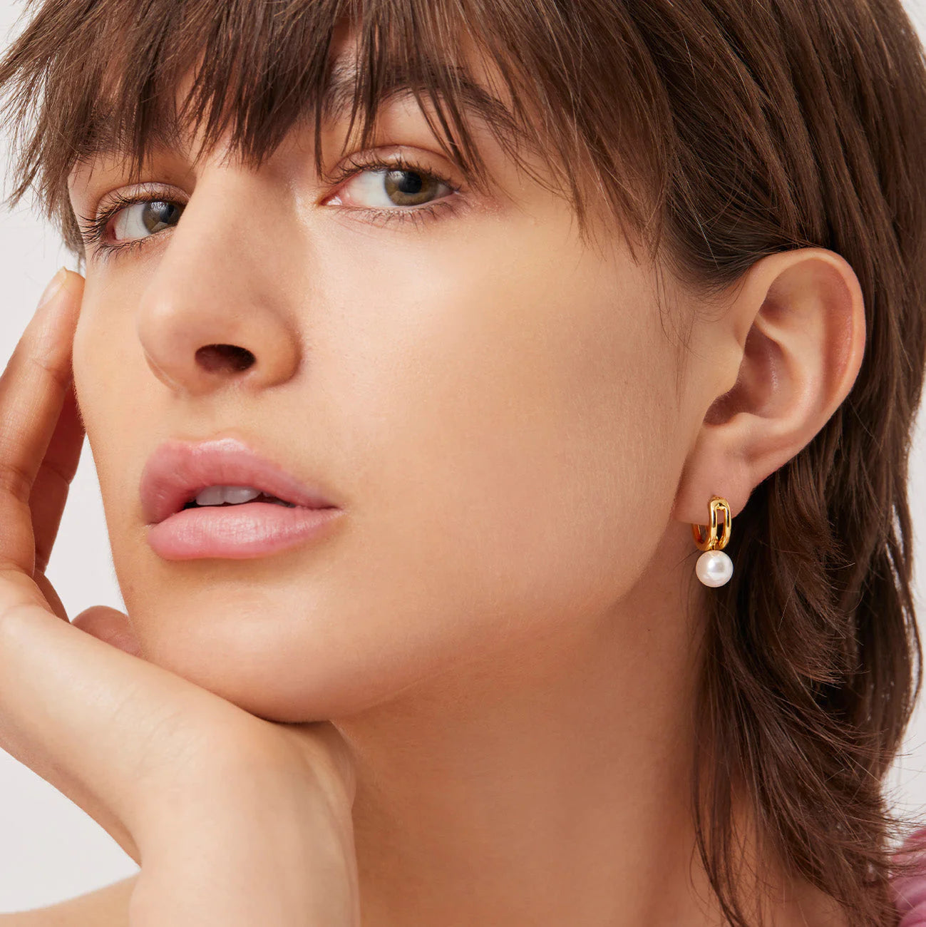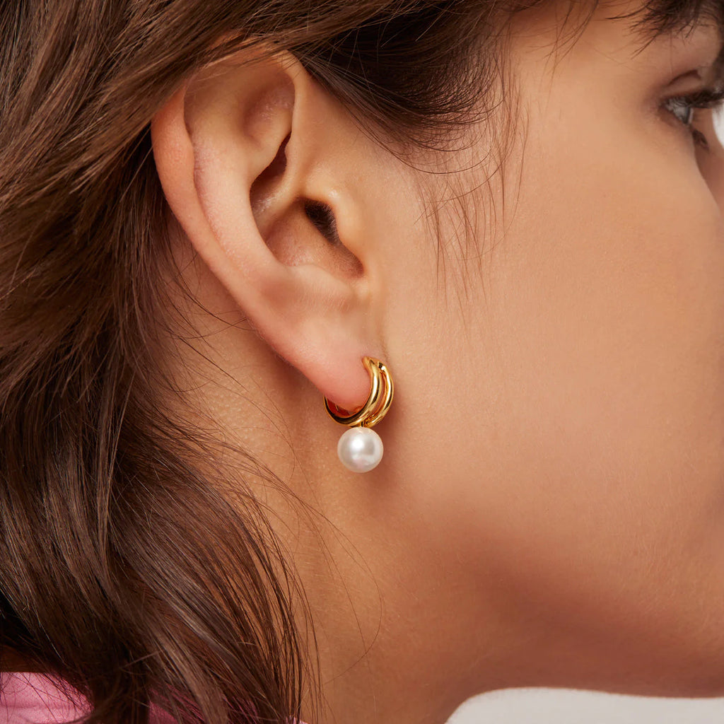 Darling huggies adorned with a sliding glass pearl for subtle movement.