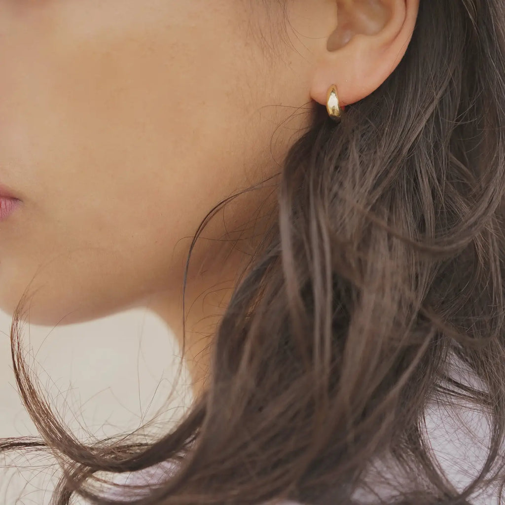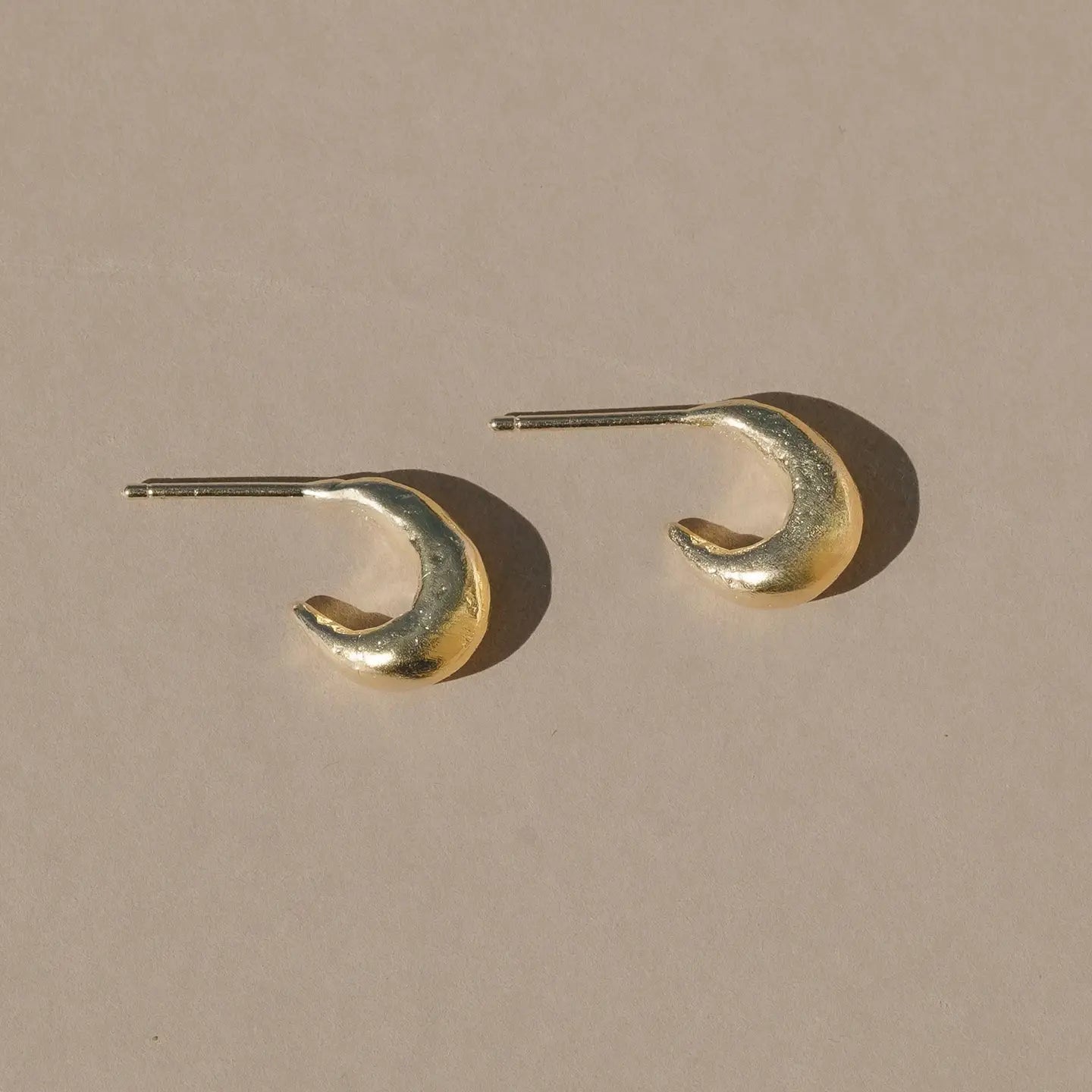 Solid cast hoop earrings with an organic rough textured surface. A nice simple minimal statement earring or for additional piercings layered with other styles.