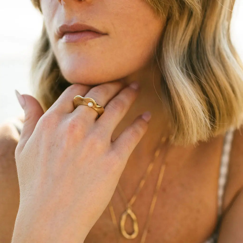 Rebekah J. Designs - Akoya with Pearl Ring (Brass)