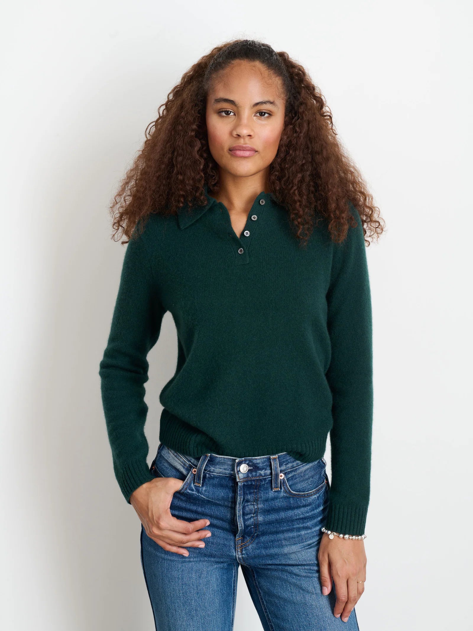 Alex Mill - Alice Polo in Cashmere (Cypress Green)