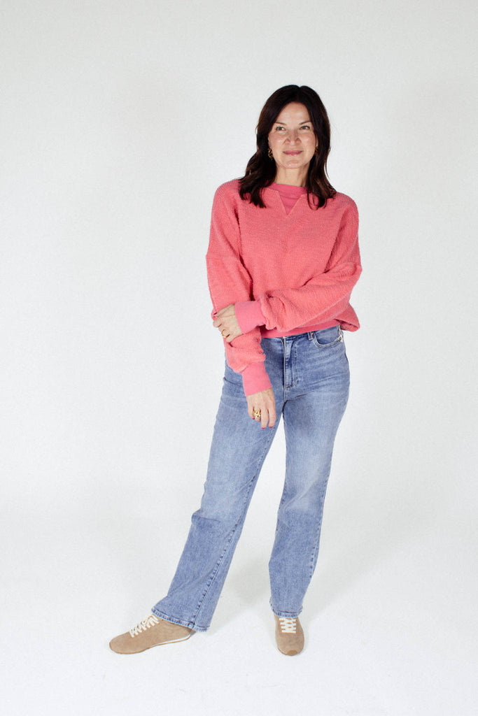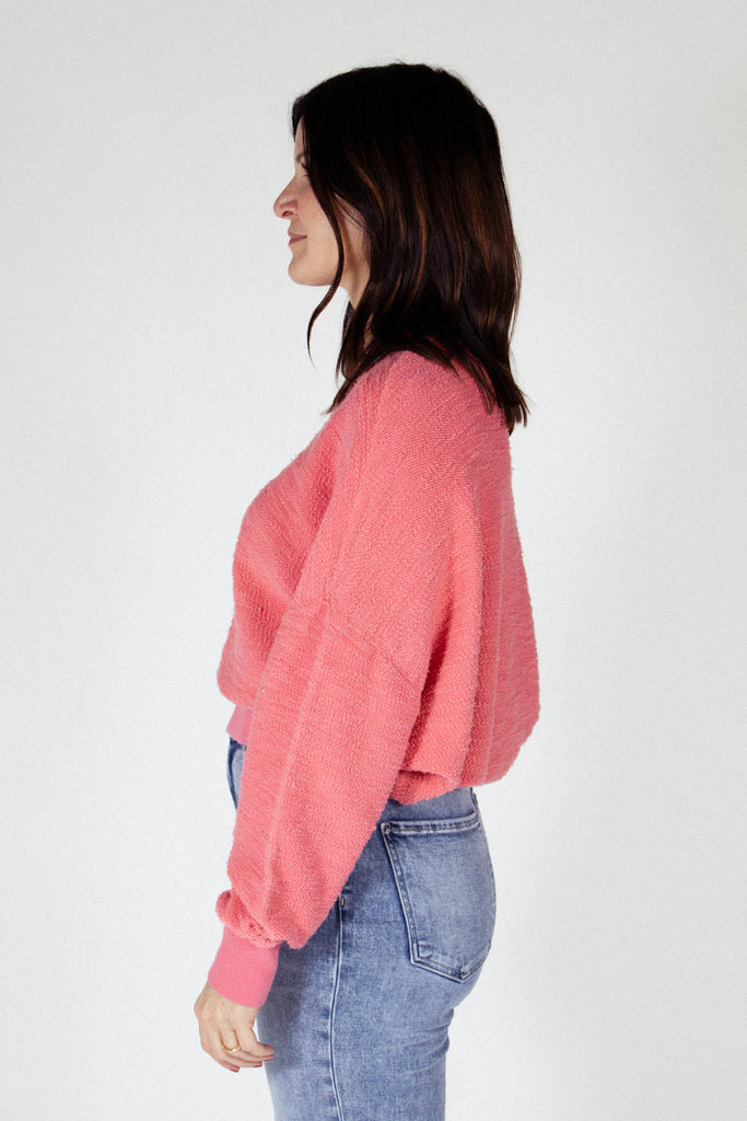 Something new for your sweatshirt collection! Made with a unique and super soft cotton boucle, pair this with your favorite sweats or dress it up a bit with some denim!