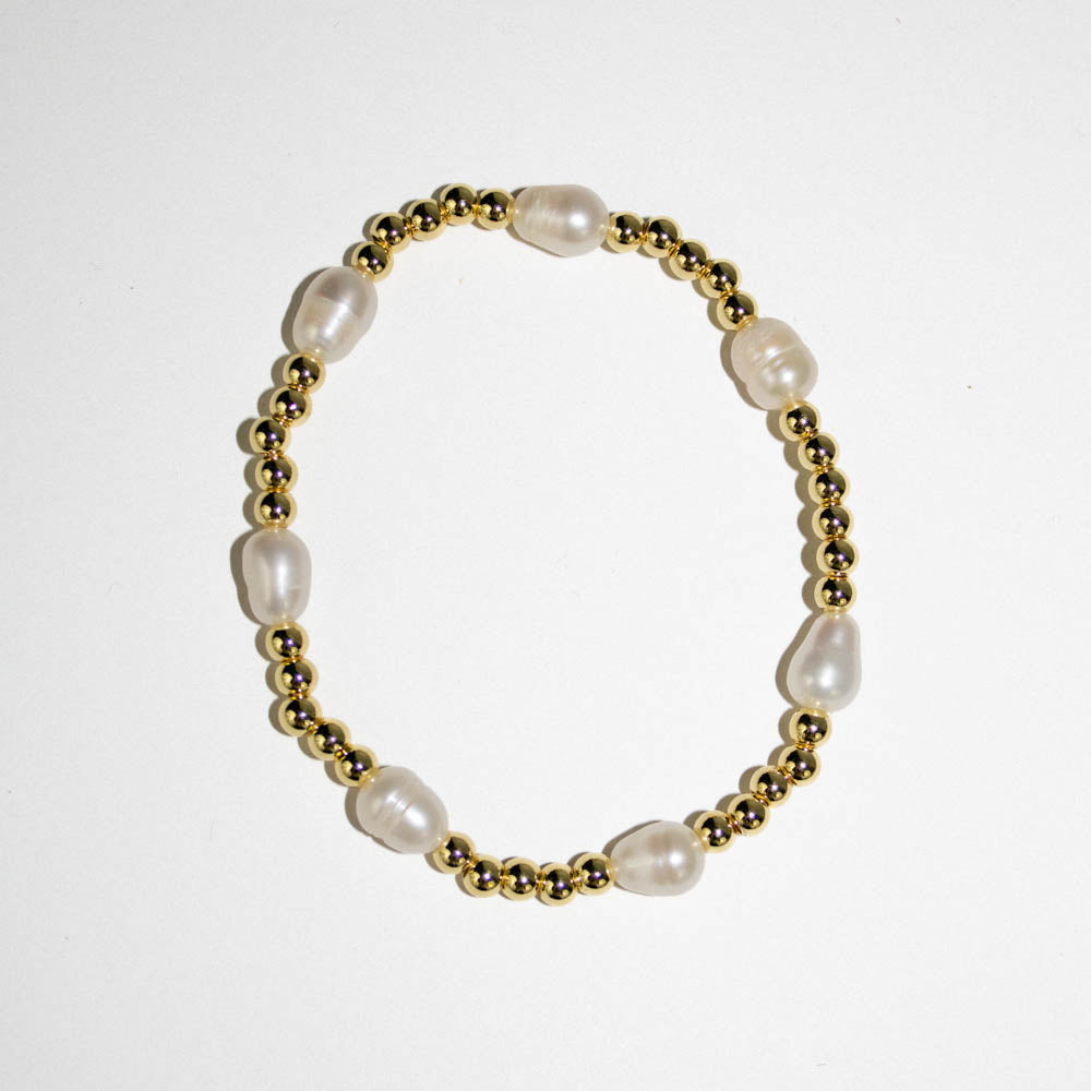 Gold plated beaded bracelet with freshwater pearls. Easy to add to your daily stack!