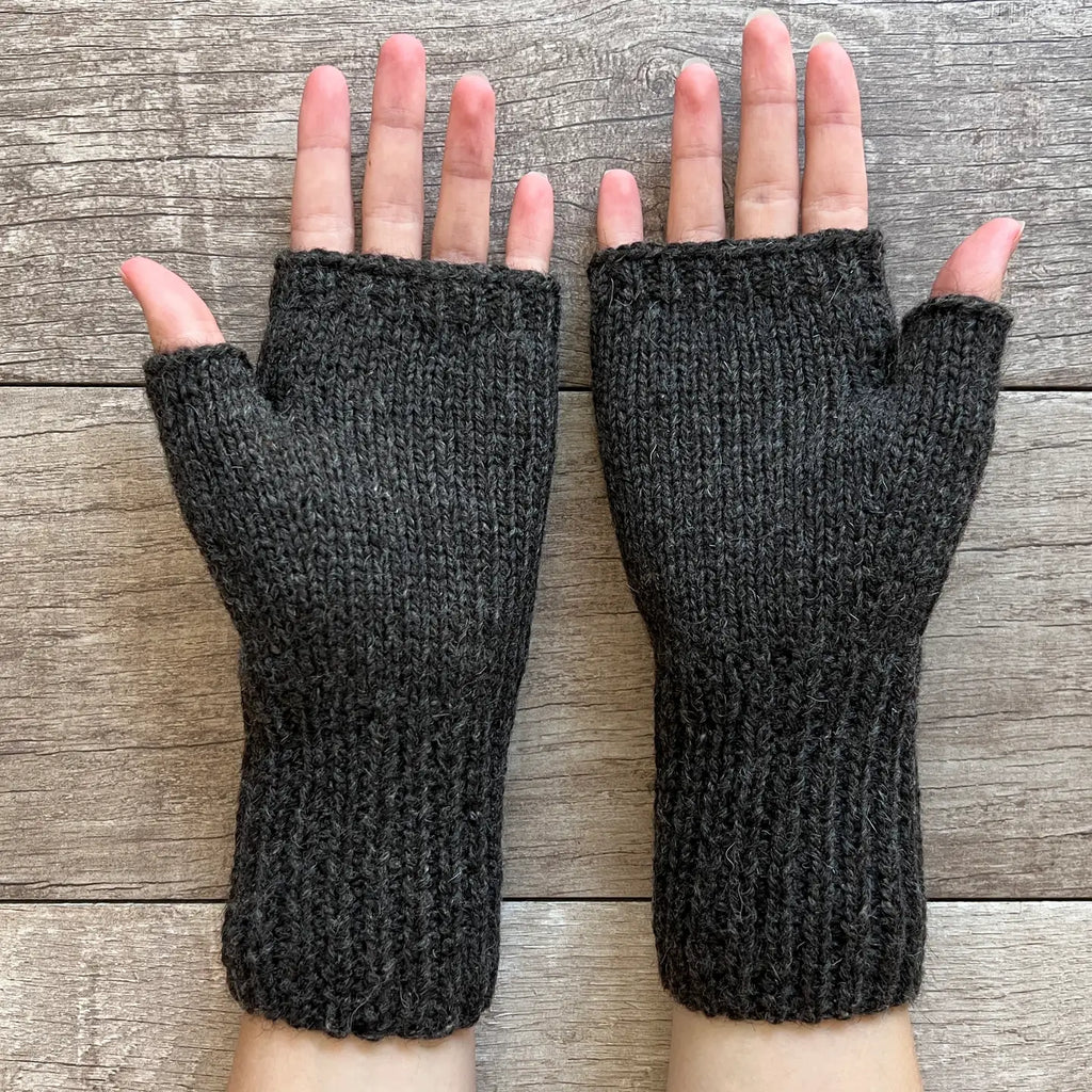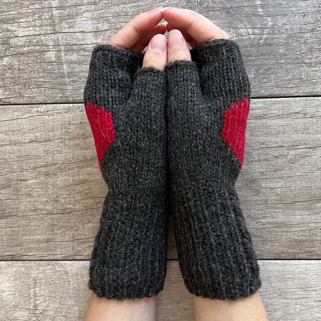 Ella Sussman - Fleece Lined Alpaca Fingerless Gloves (Grey/Red Heart)