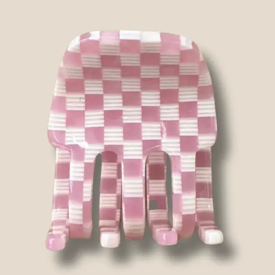 Delicate, chic, and oh-so-versatile—the Mini Lilac Checker Hair Claw is the perfect accessory for subtle, polished hairstyles. At 1.3 inches, this petite claw showcases a soft lilac and cream checker pattern that adds a touch of charm to any look. Ideal for securing smaller sections of hair, it’s lightweight yet sturdy for all-day wear. From quick touch-ups to detailed styles, this mini claw makes everyday moments a little more beautiful.
