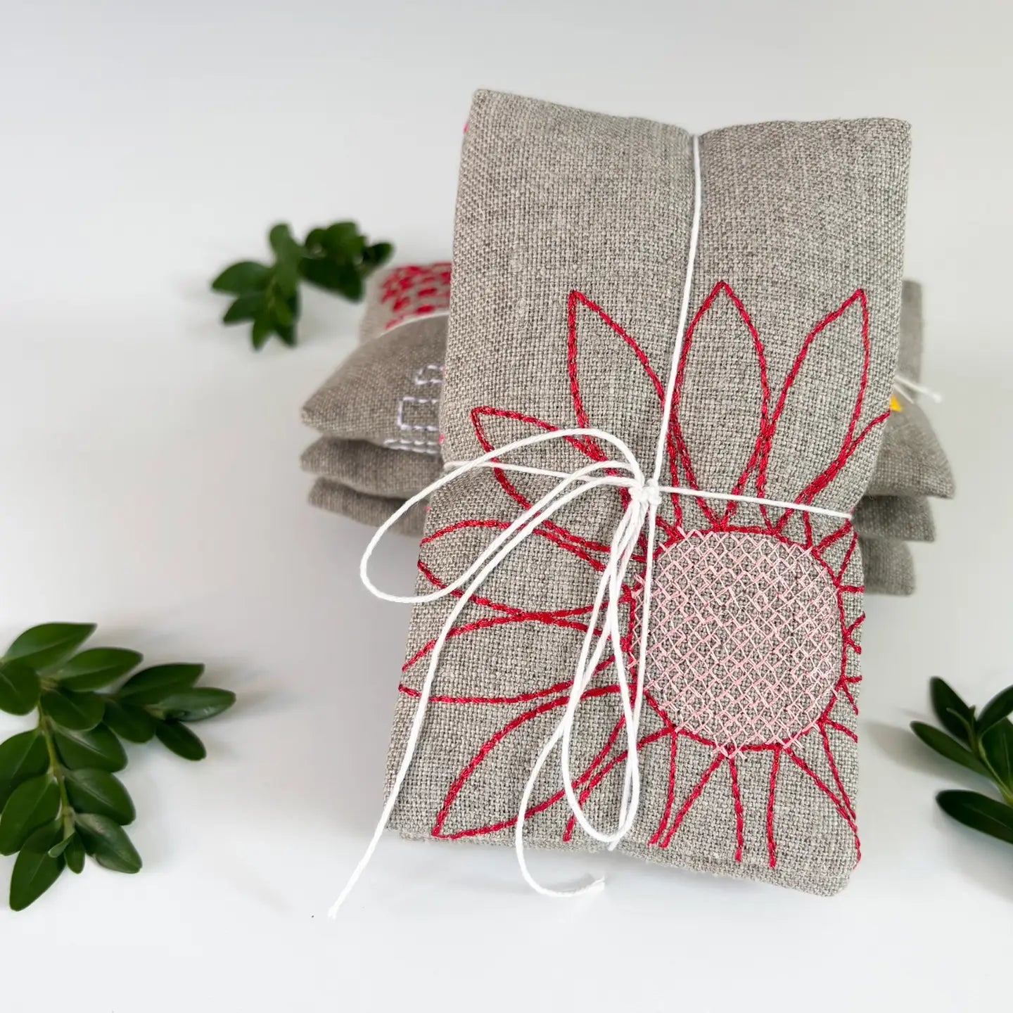 Filled with French lavender, these darling embroidered sachets come in a set of 3. Great for gifting, and keeping your clothes smelling fresh in your drawers.