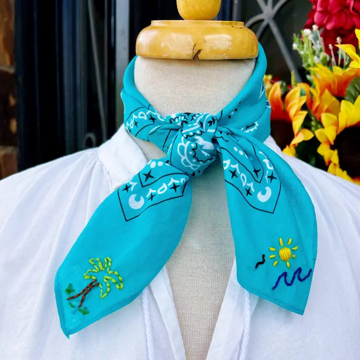 Pradera - Embroidered Summer Loving Bandana (Turquoise)