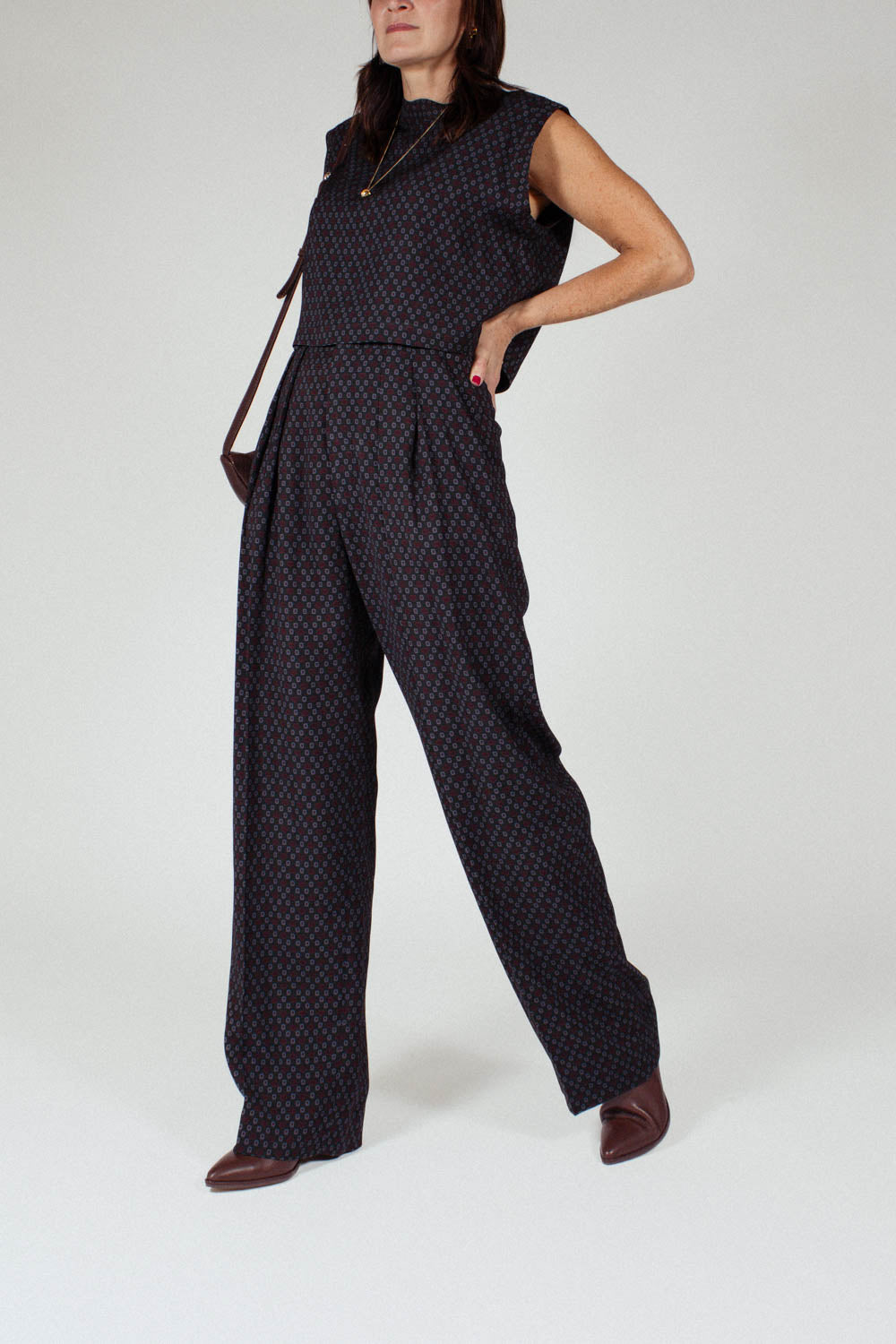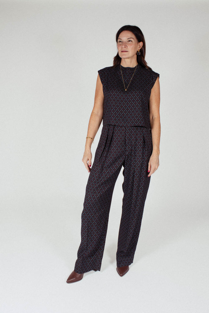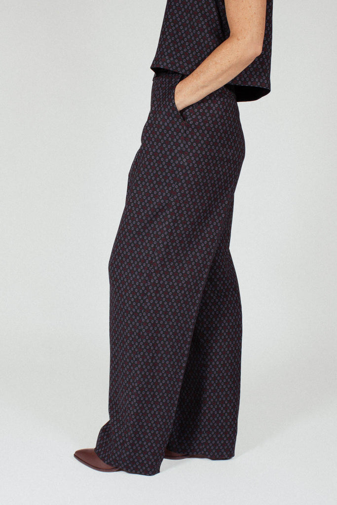 The Hede Pant are a patterned trouser with a breezy wide leg silhouette. Pairs easily with a classic tee or with the coordinating Bacchus Top.