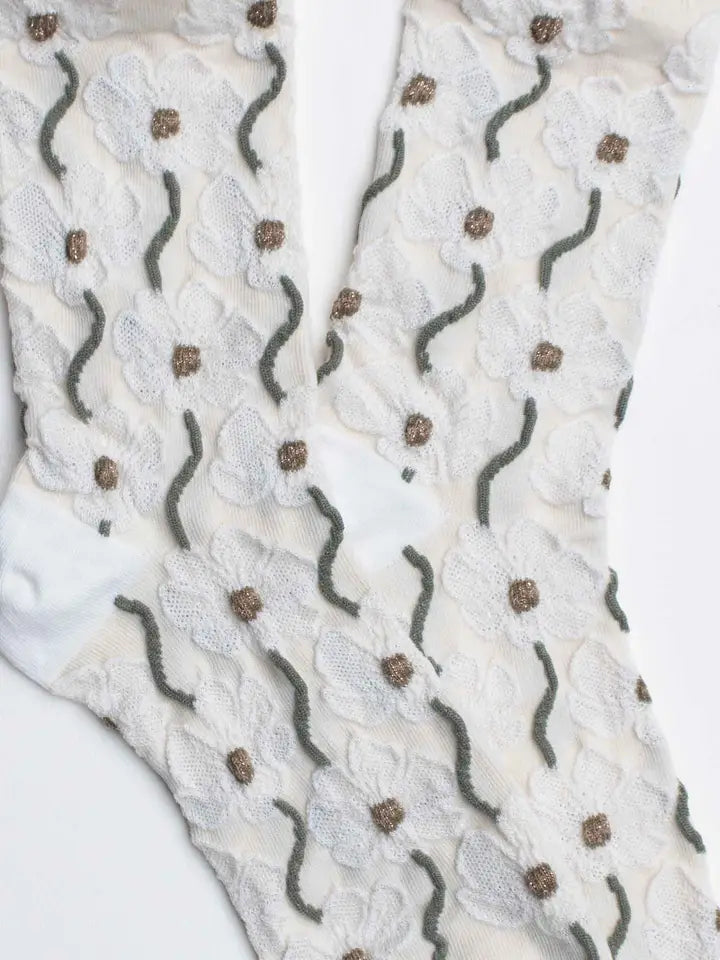 Tiepology - Floral Bloom Cotton Blend Sock (Cream)