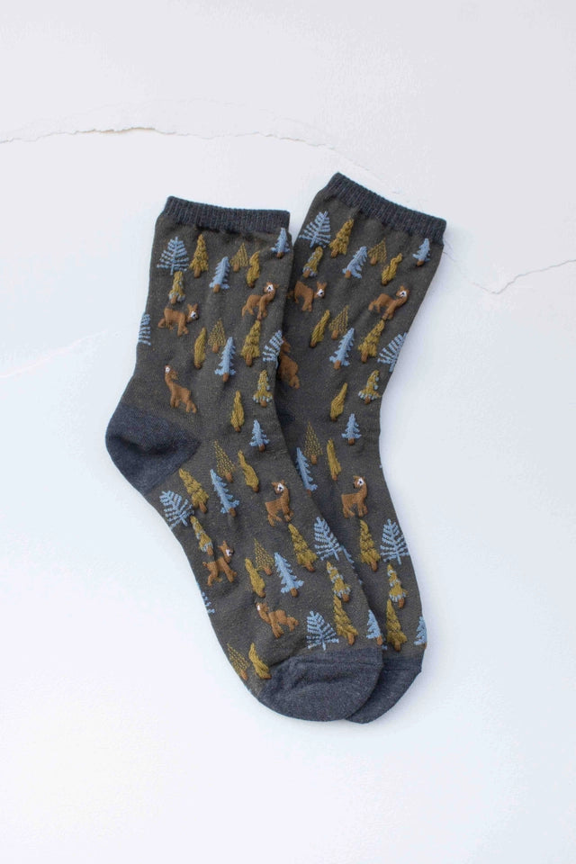 Step into cozy woodland charm with our Forest Friends Socks. Featuring playful embroidered deer wandering through soft pine and spruce trees, these socks bring a hint of holiday spirit and outdoor adventure to your day.