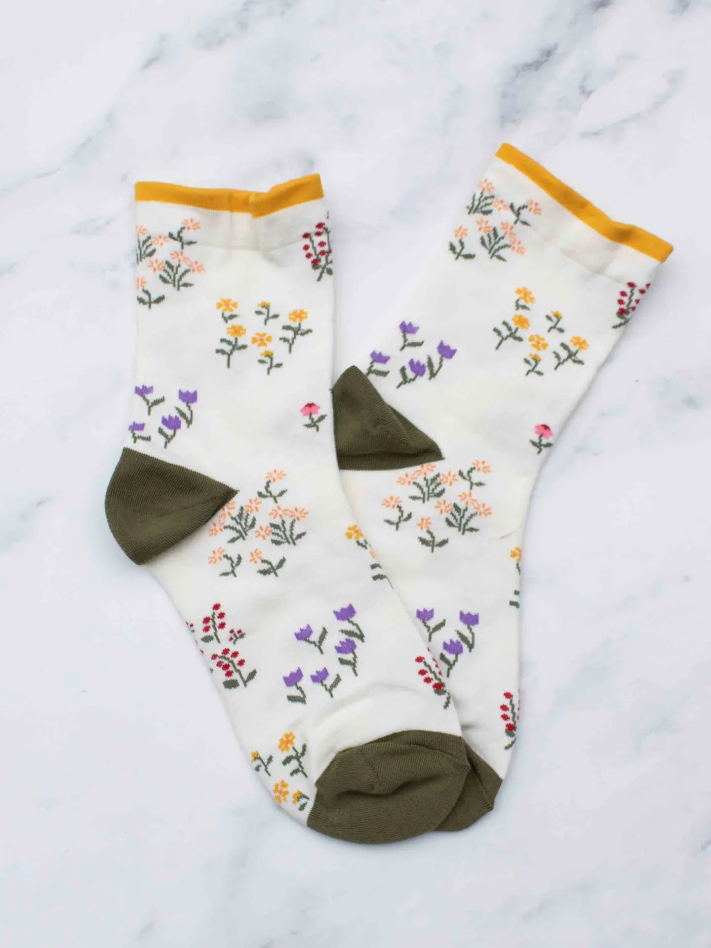 Tiepology - Penelope Floral Casual Socks (Cream/Mustard)