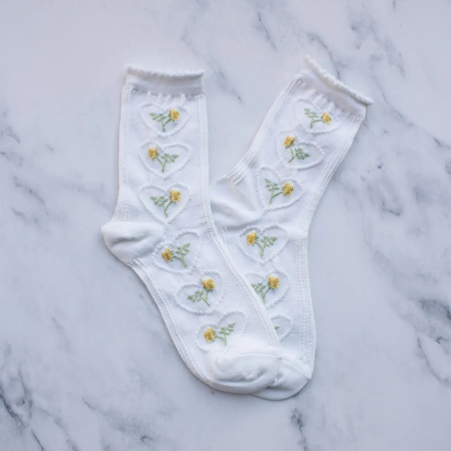 Tiepology - Vintage Rose & Heart Casual Socks (White)