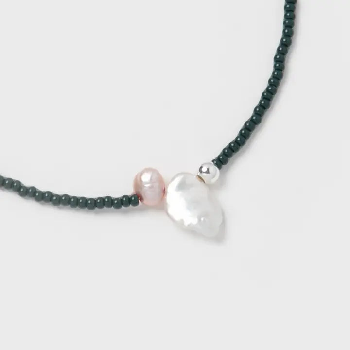 17" Beaded necklace with freshwater pearls and 925 sterling silver bead