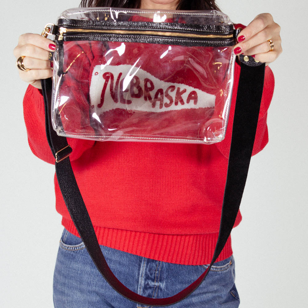 Zina Kao Exclusives - Clear Stadium Bag with Leather Strap (Jet Black)