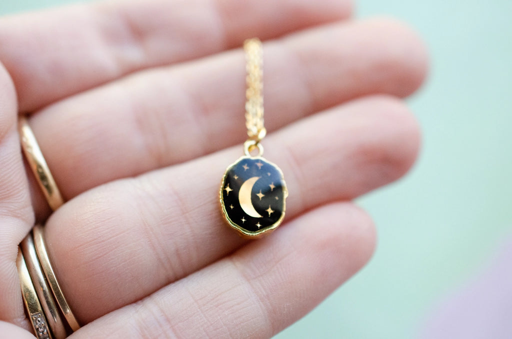 Jill Makes - Celestial Gemstone Pendant Necklace (Onyx Moon)
