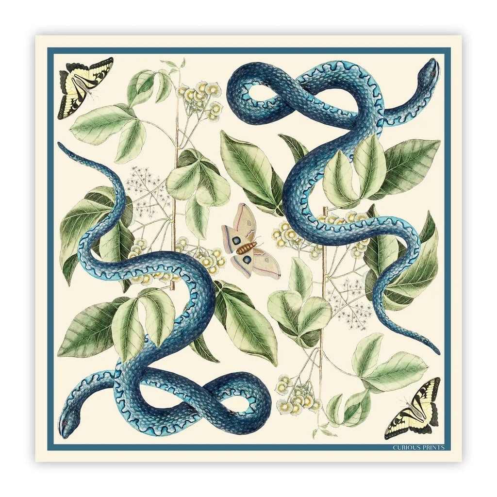 Curious Prints - Silk Bandana (Blue Snake/Butterfly)