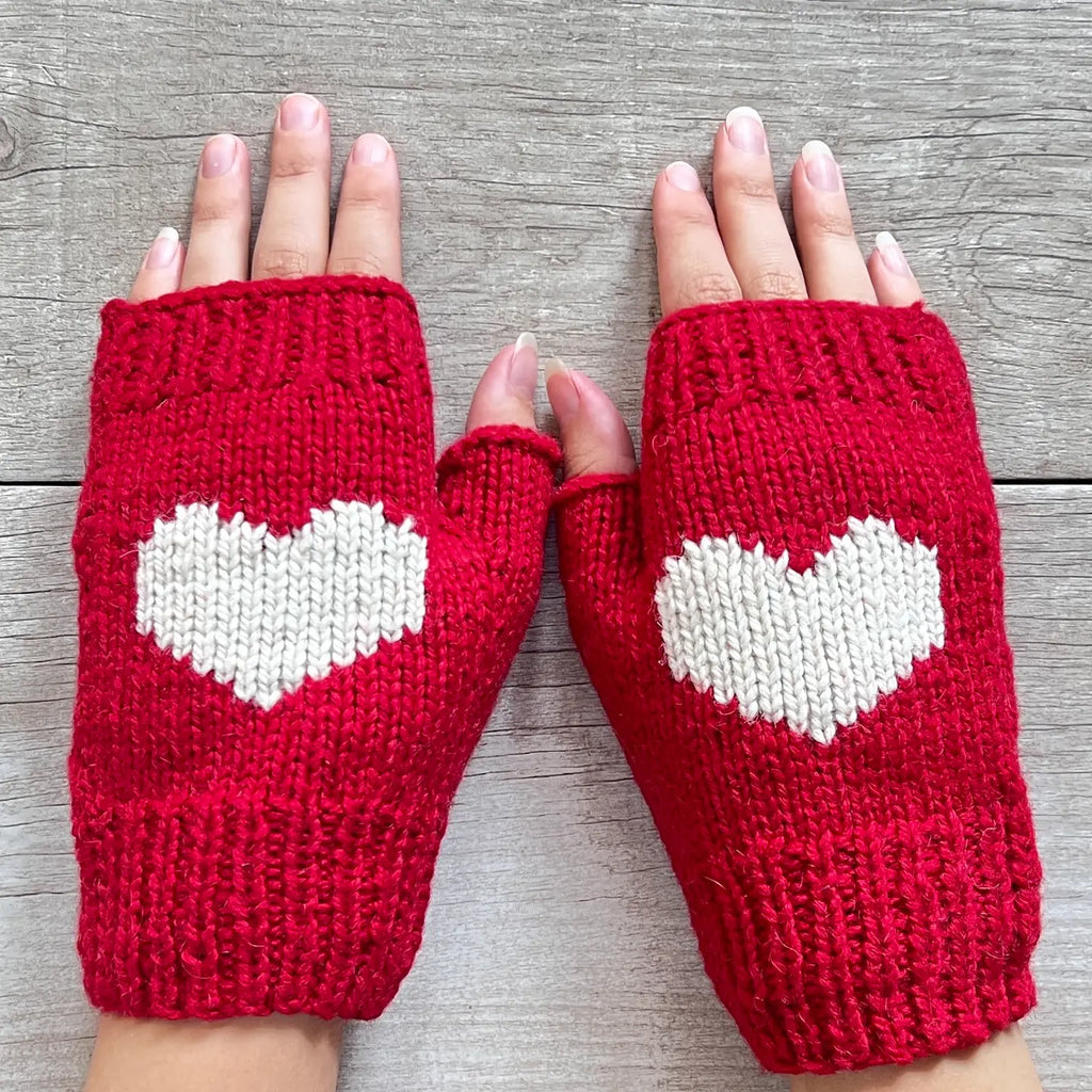 Ella Sussman - Short Alpaca Fingerless Gloves (Red/Cream Heart)