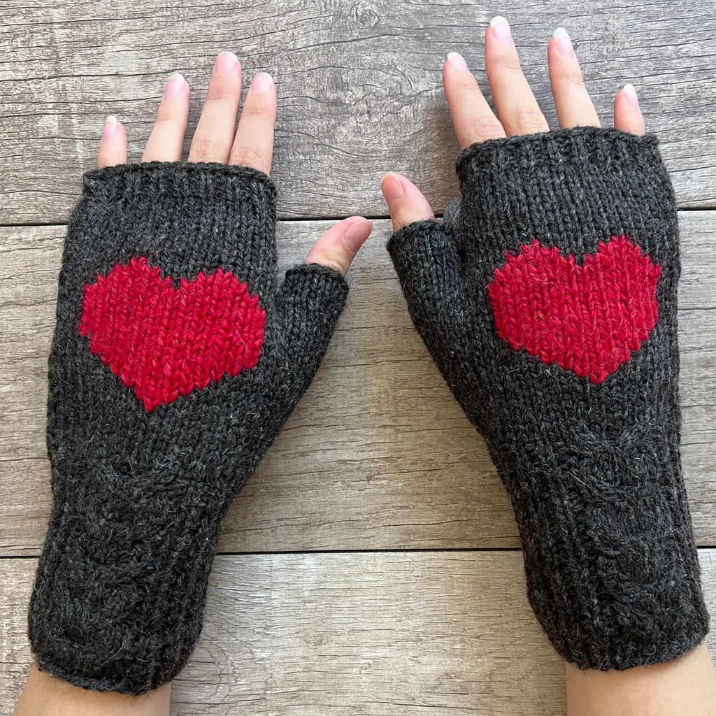 Ella Sussman - Fleece Lined Alpaca Fingerless Gloves (Grey/Red Heart)