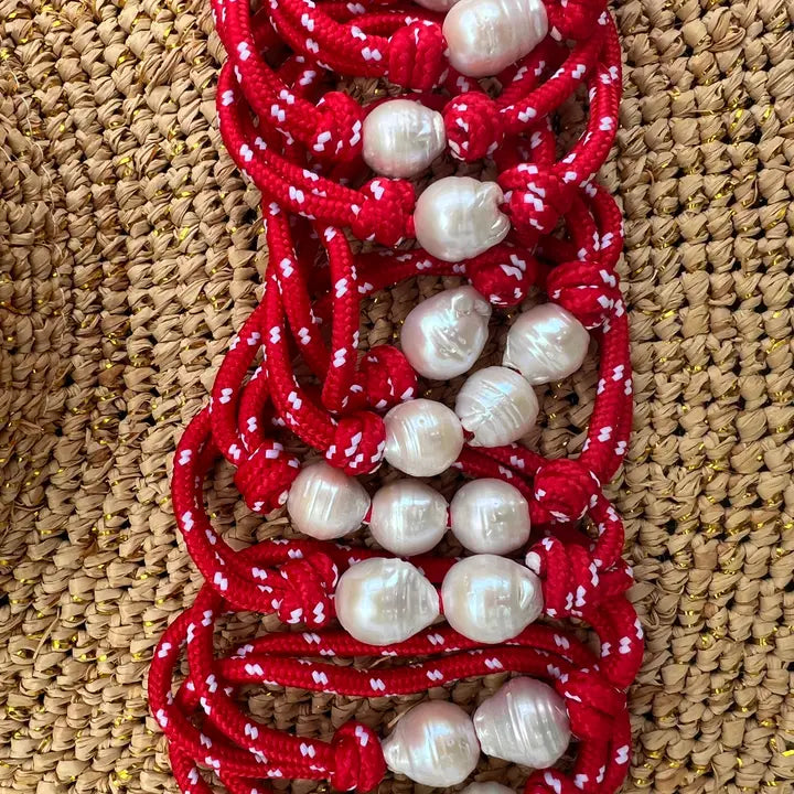 Lauren & Bleau Jewelry - One Pearl Necklace (Red/White)