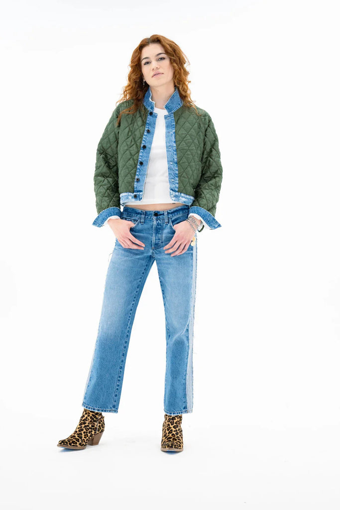 A layering piece that does the heavy lifting. The Bleeker Street Liner is a cropped quilted jacket with subtle volume, contrast binding, and denim details at the hem and cuffs. Lightweight but warm enough to wear solo on crisp days—or layered under a coat when temps drop.