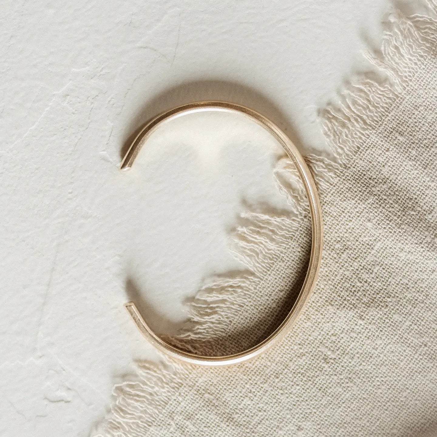 Solid, half-round, polished, 6mm wide, adjustable brass cuff.