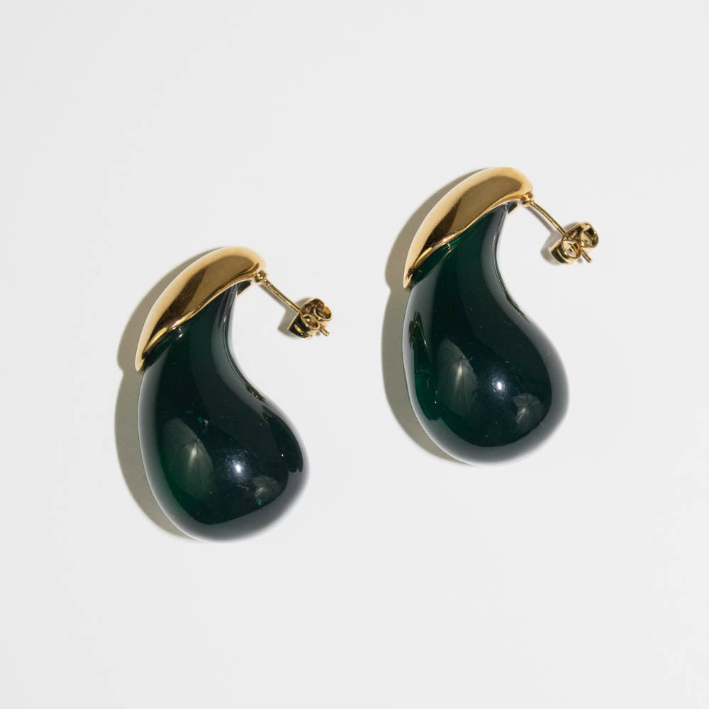 Lucas Jack - Emerald Green Resin Drop Earrings (Gold)