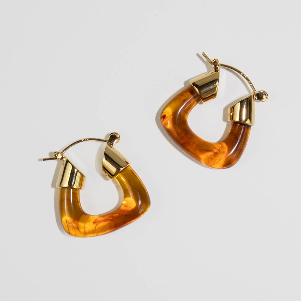 Lucas Jack - Small Tortoise Shell Resin Squared Hoop Earrings (Gold)