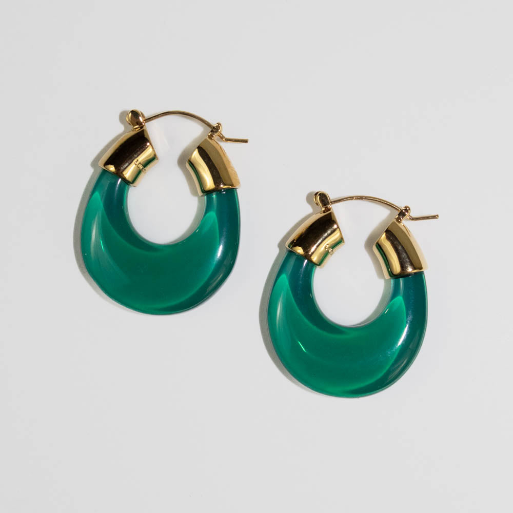 Lucas Jack - Small Emerald Green Resin Hoop Earrings (Gold)