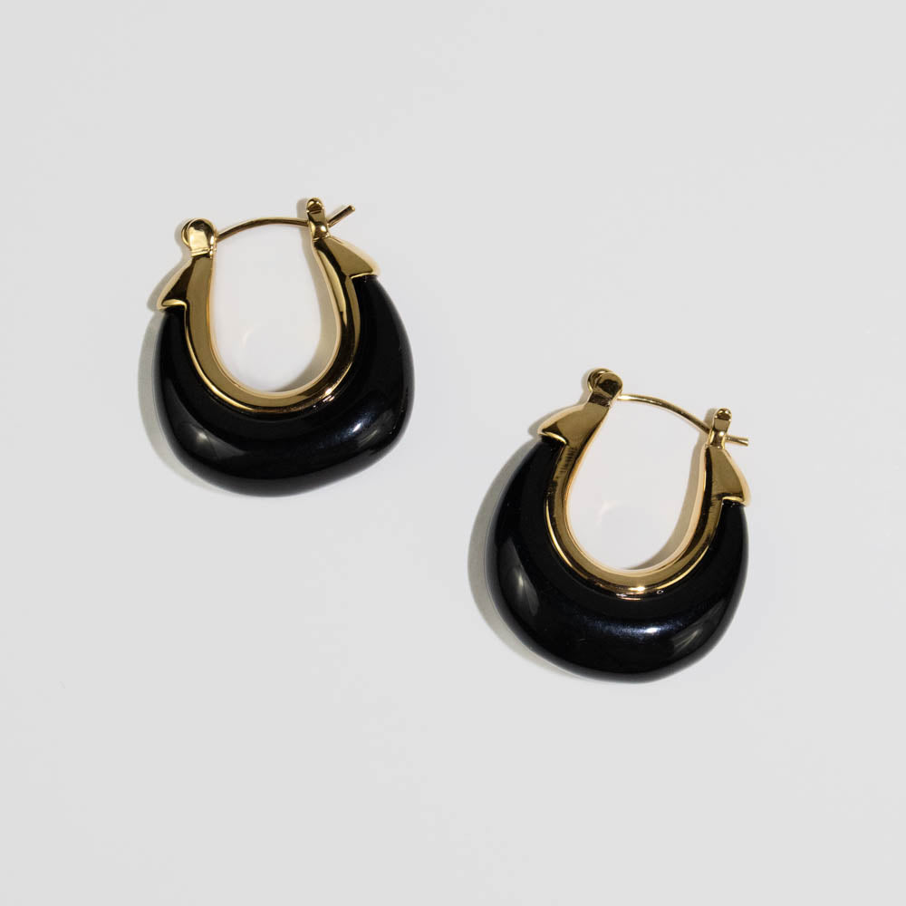 Lucas Jack - Small Black Resin Hoop Earrings (Gold)
