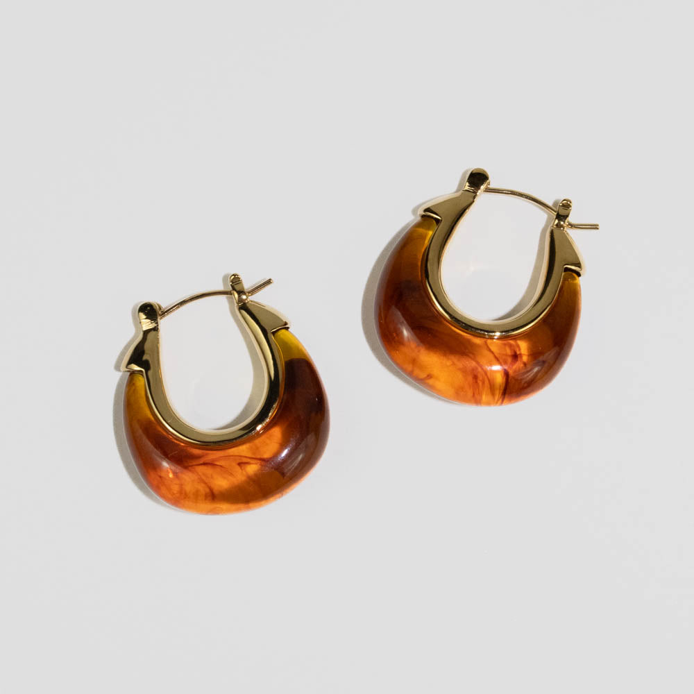 Lucas Jack - Small Tortoise Shell Resin Hoop Earrings (Gold)