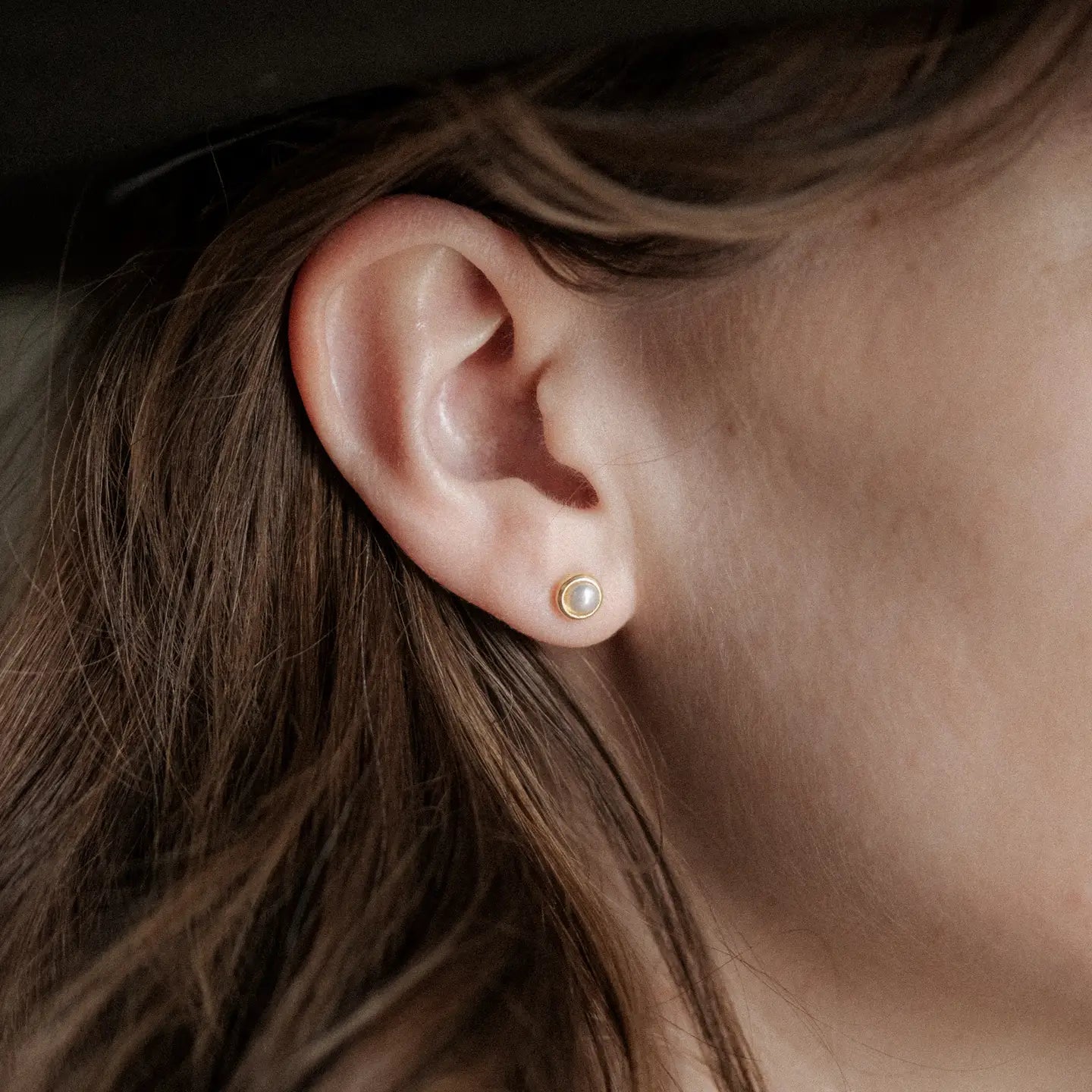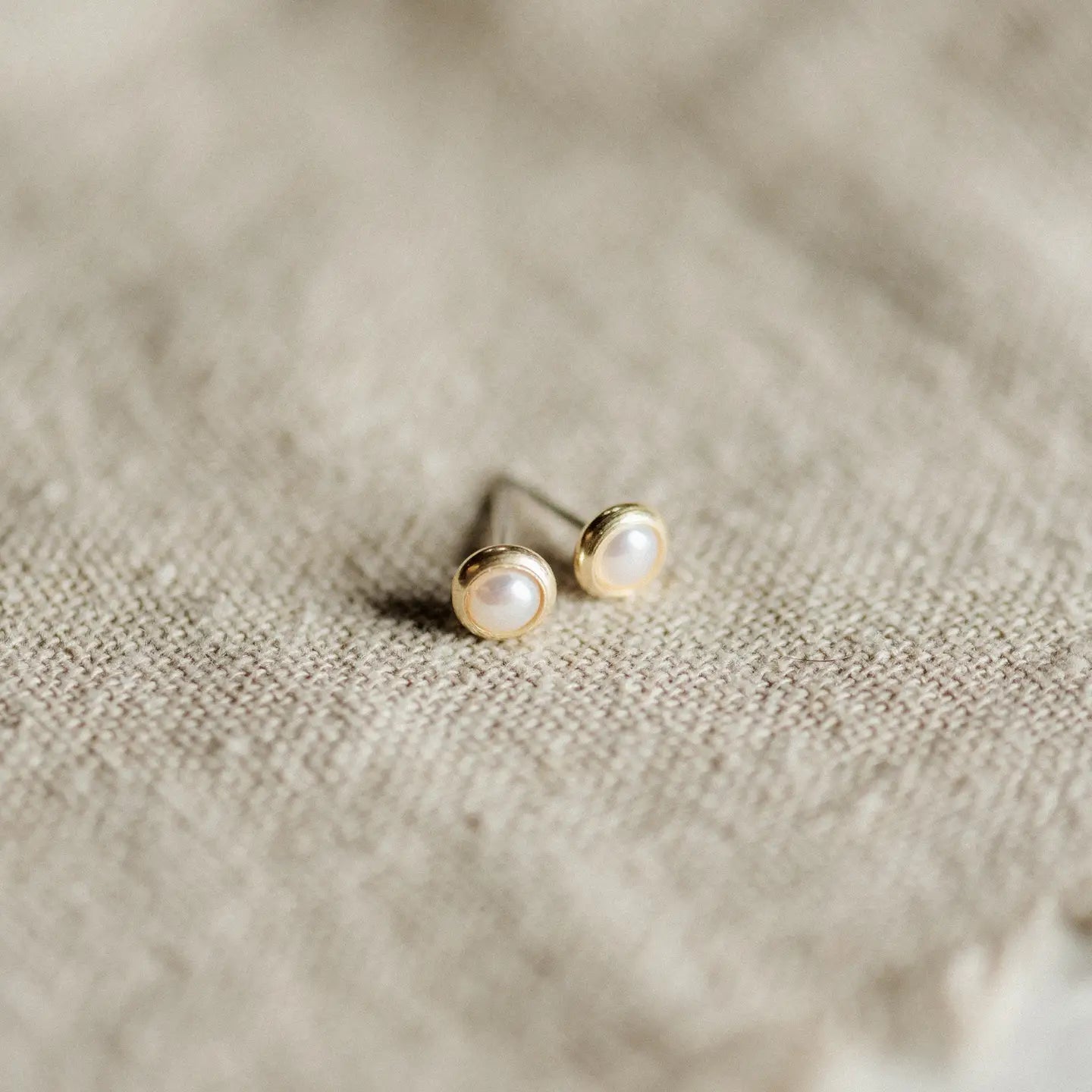 Solid brass bezels on sterling silver stud posts with 4mm bezel set freshwater pearls. These studs are soldered by hand, and accompanied by high quality stones which are sorted, paired, and set by hand.