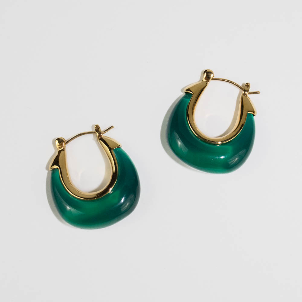 Simple yet stunning emerald green resin hoops with gold finishing. Adds a playful touch with a bit of color and gold!