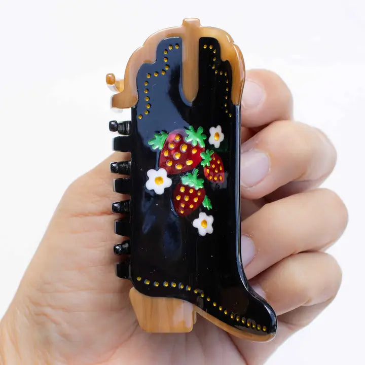 Tiepology - Strawberry Embellished Cowgirl Boots Hair Claw Clip (Black)