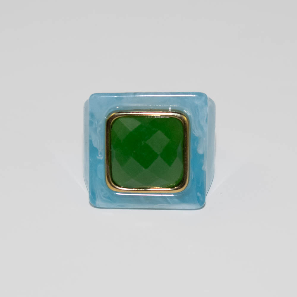 Lucas Jack - Baby Blue Resin Ring (Green Quartz)