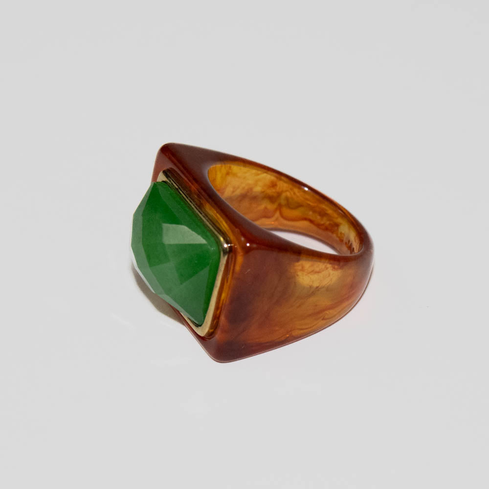 Lucas Jack - Firestone Resin Ring (Green Quartz/Gold)