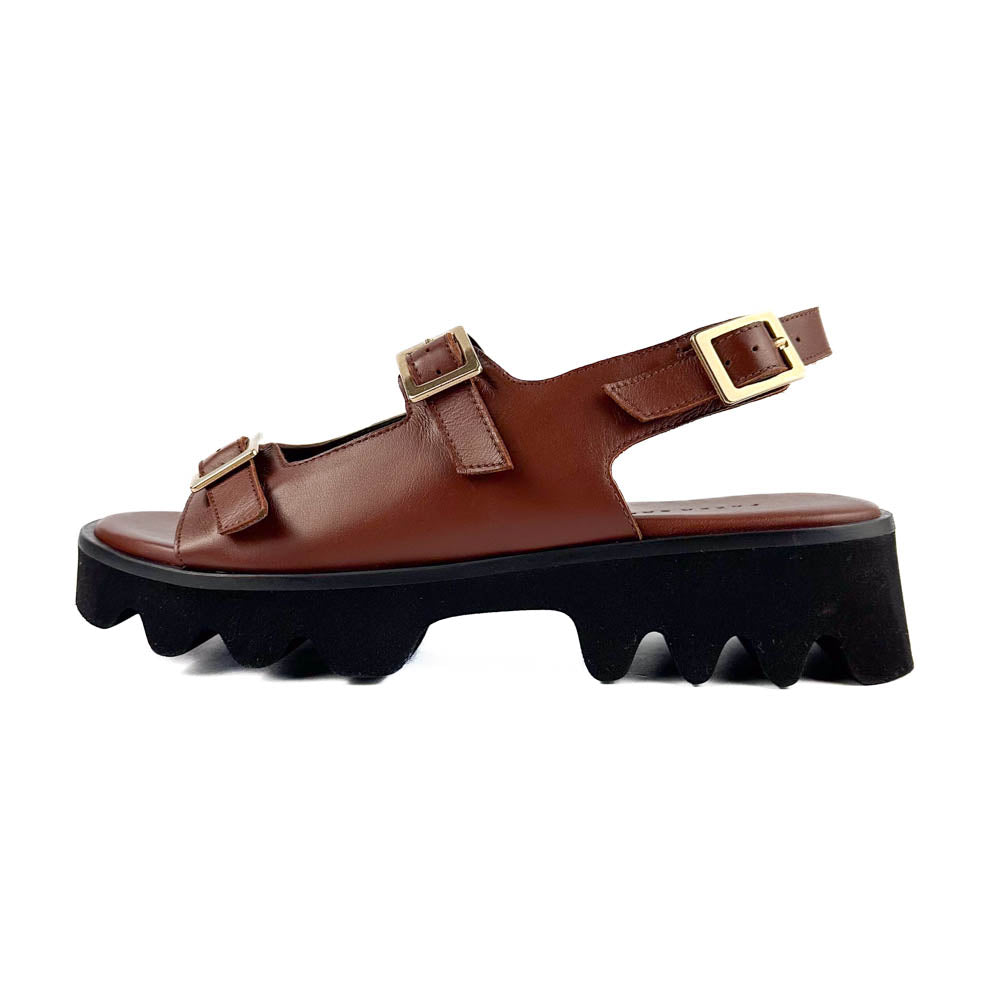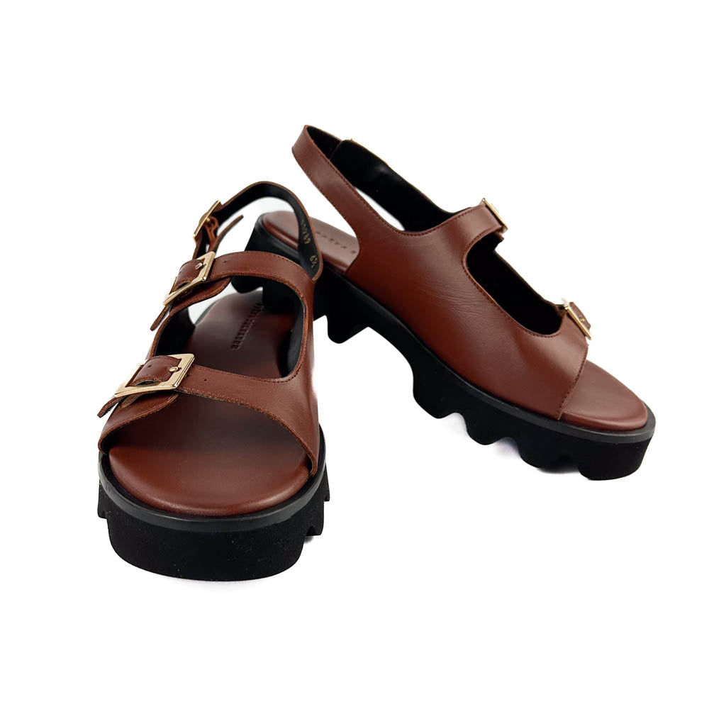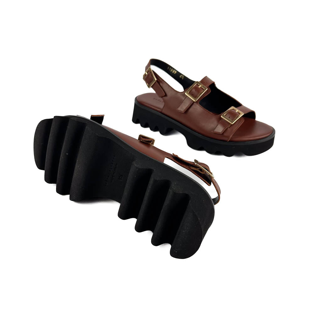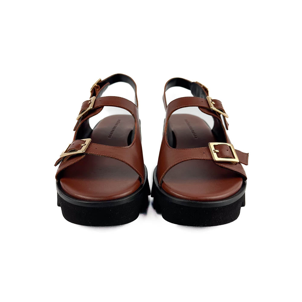Wear all day, everywhere. Mindy features a lightweight lug sole, with open straps and gold buckles.