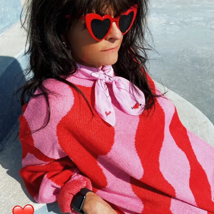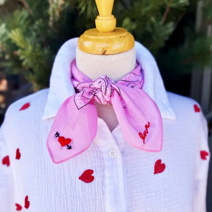 Each bandana is hand drawn and hand embroidered with love just for you. No two will be exactly the same. You can wear around your neck or in your hair. Tie one on your fav bag or around the neck of your favorite dog!