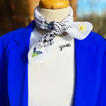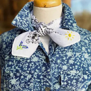 Pradera - Embroidered Texas Bluebonnet Bandana (White)