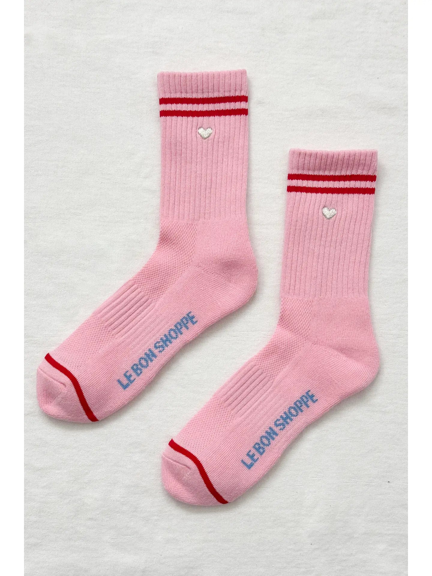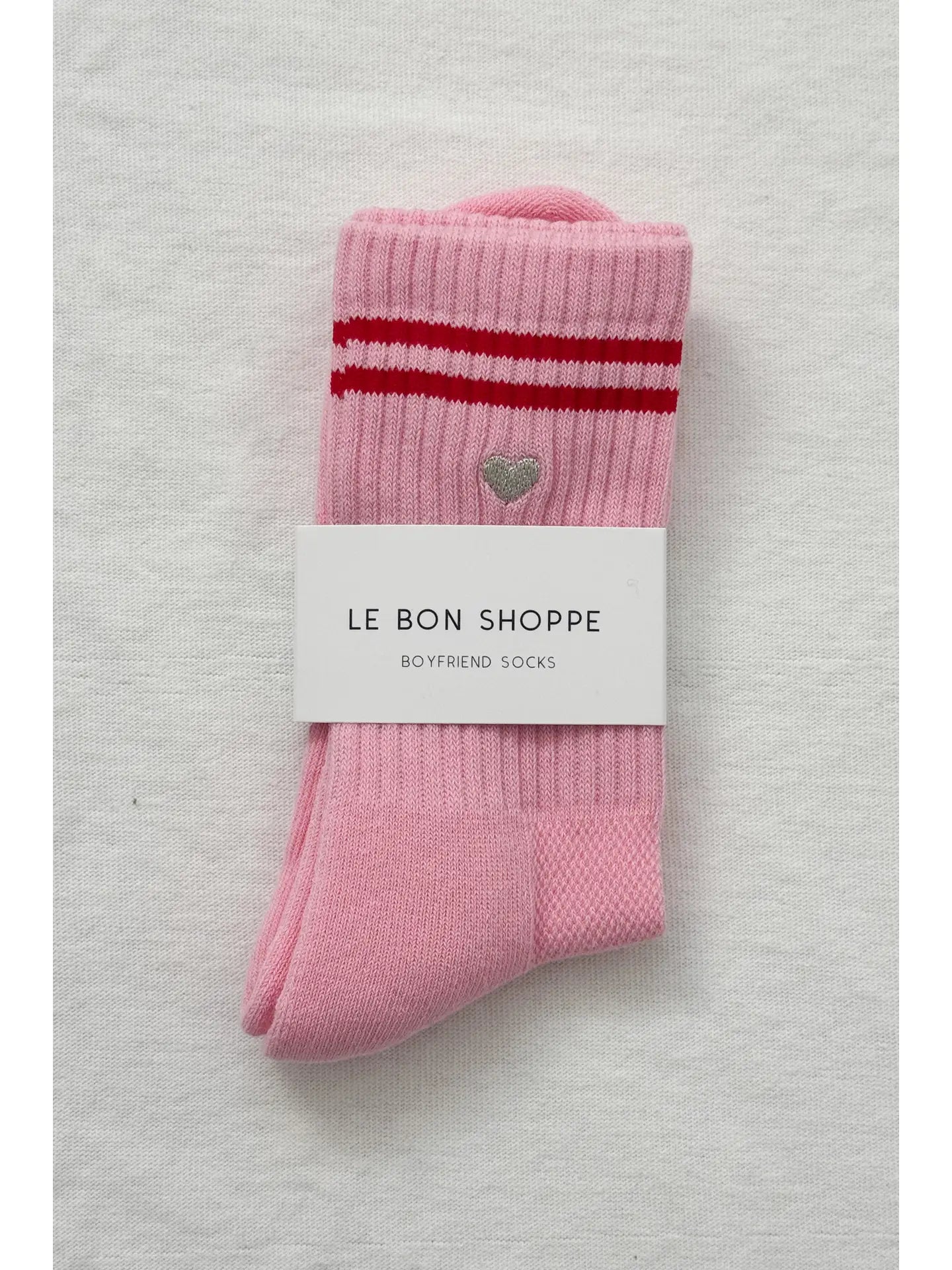 Le Bon Shoppe - Embroidered Boyfriend Socks (Amour Pink+Heart)