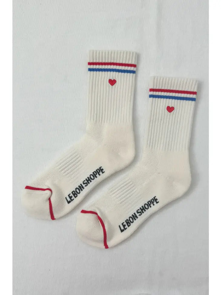 Le Bon Shoppe - Embroidered Boyfriend Socks (Milk+Heart)