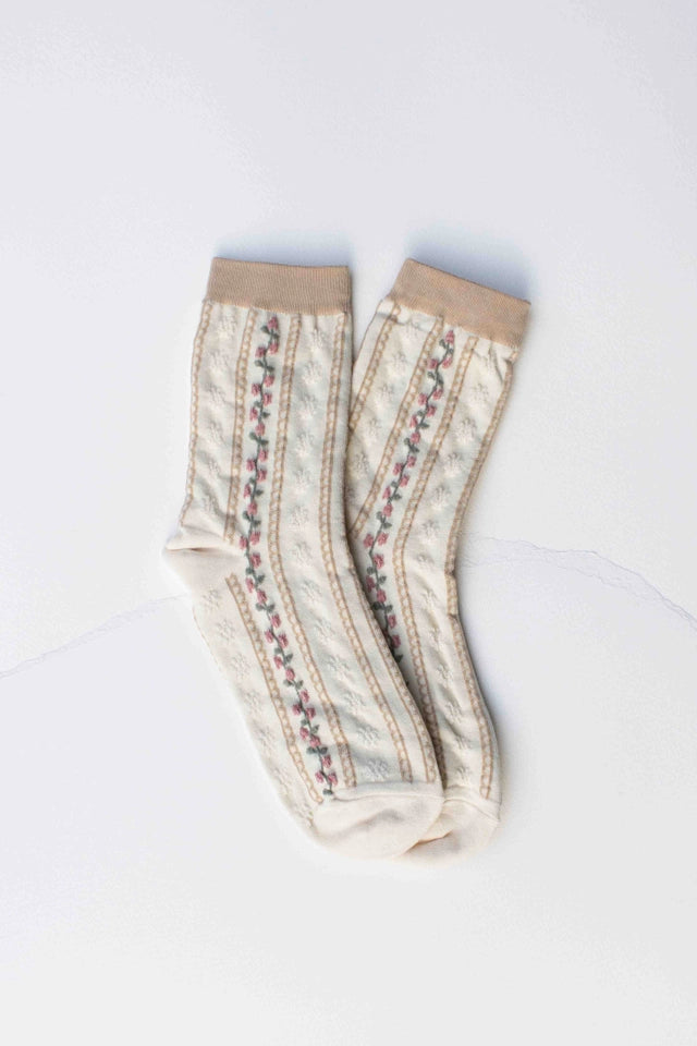 Tiepology - Vintage Stripe Floral Cotton blend Socks (Cream/Beige)