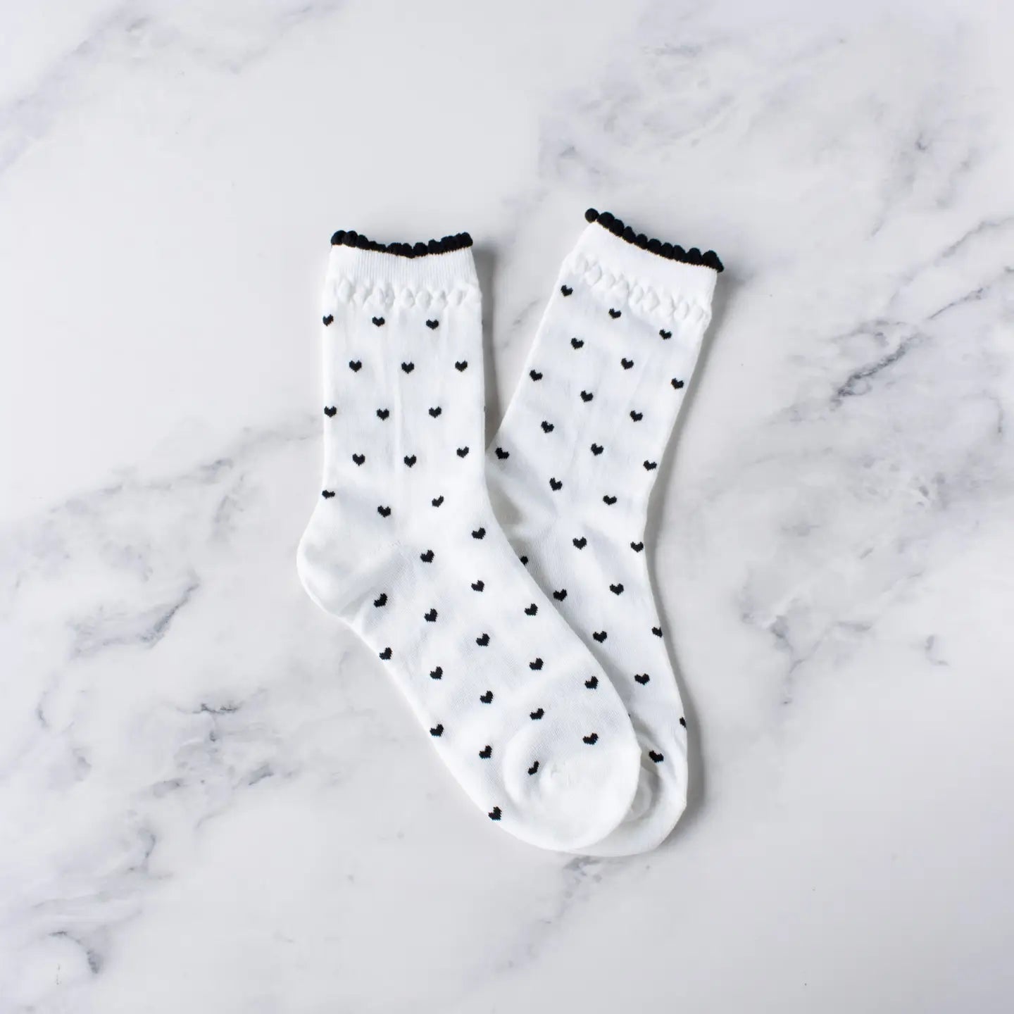 Tiepology - Always Lovely Casual Socks (White/Black Heart)