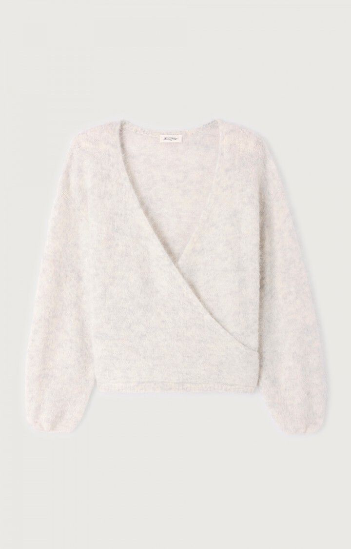 The Nuny Jumper is a wrap style sweater with a v-neckline and slight balloon sleeves in a fuzzy fabrication that feels like a cloud!