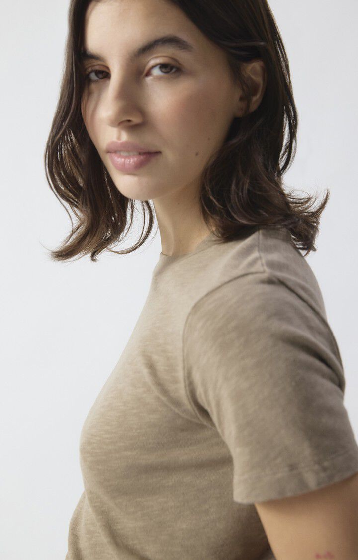 Meet your new favorite t-shirt! A perfectly fitted but not skin-tight silhouette is made from an ultra soft cotton slub fabrication. This tee gives you a flattering shape and makes it easy for styling solo or layered up!