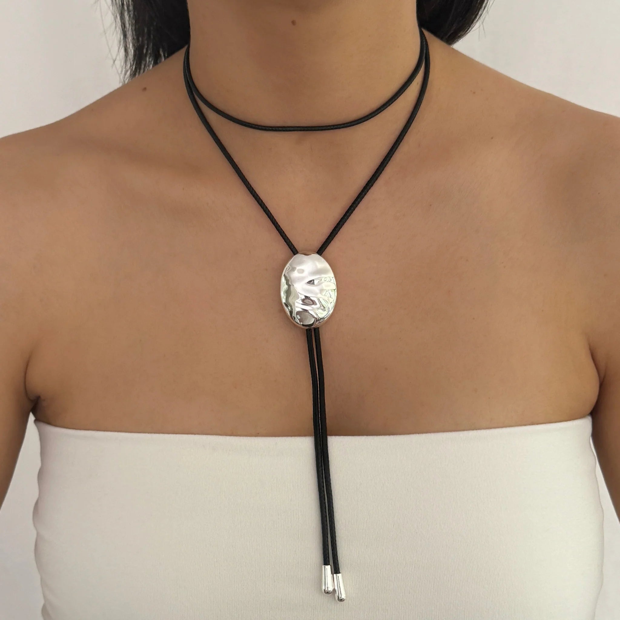 This bolo features a polished, sculptural dome on waxed cord that adjusts easily thanks to its sliding design. The extra long cord allows you to wear it tight or wrapped as a lariat to suit your styling mood.