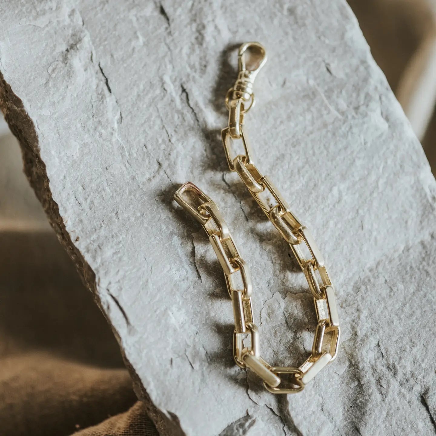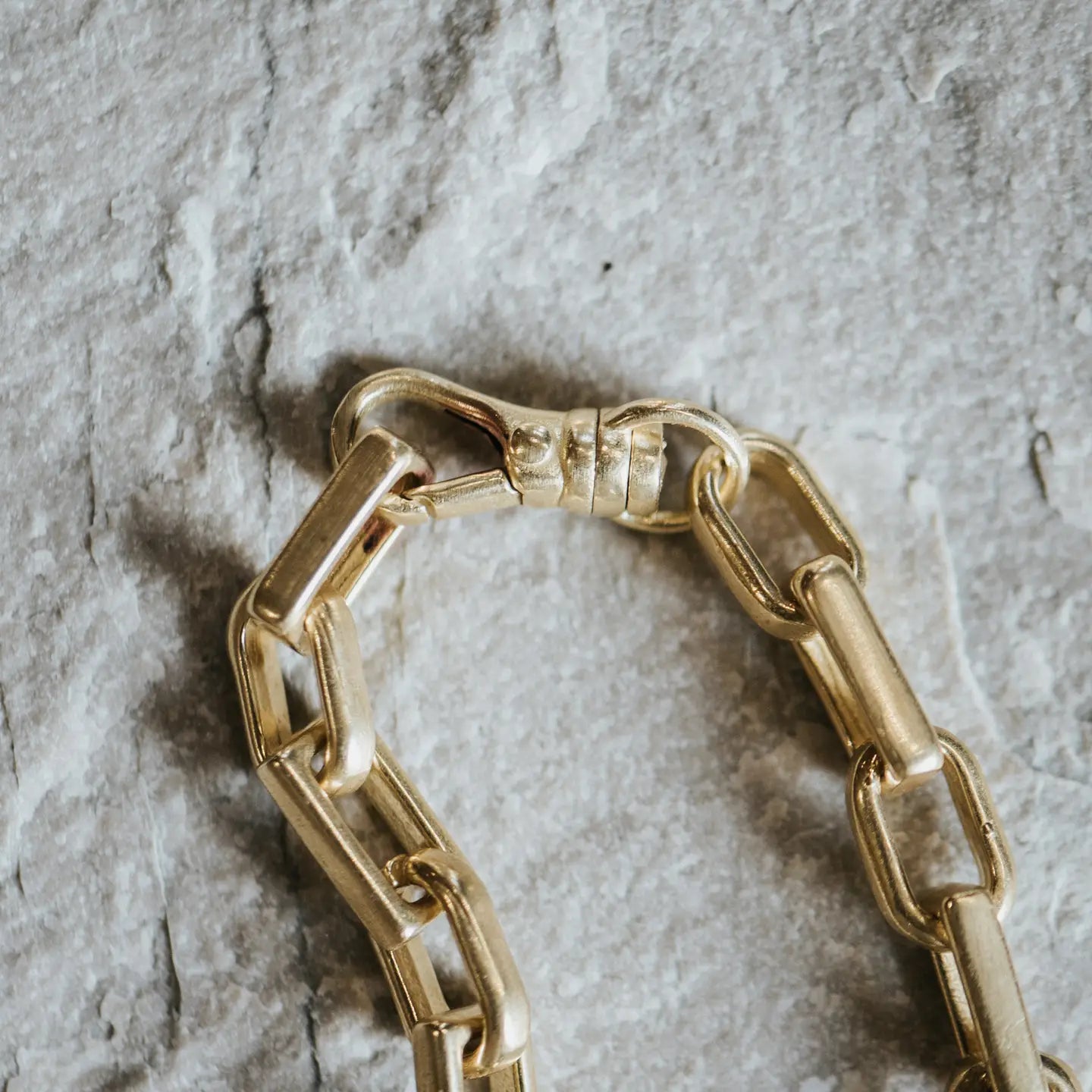 This exaggerated box style chain makes a bold and stackable bracelet, perfect for any collection.